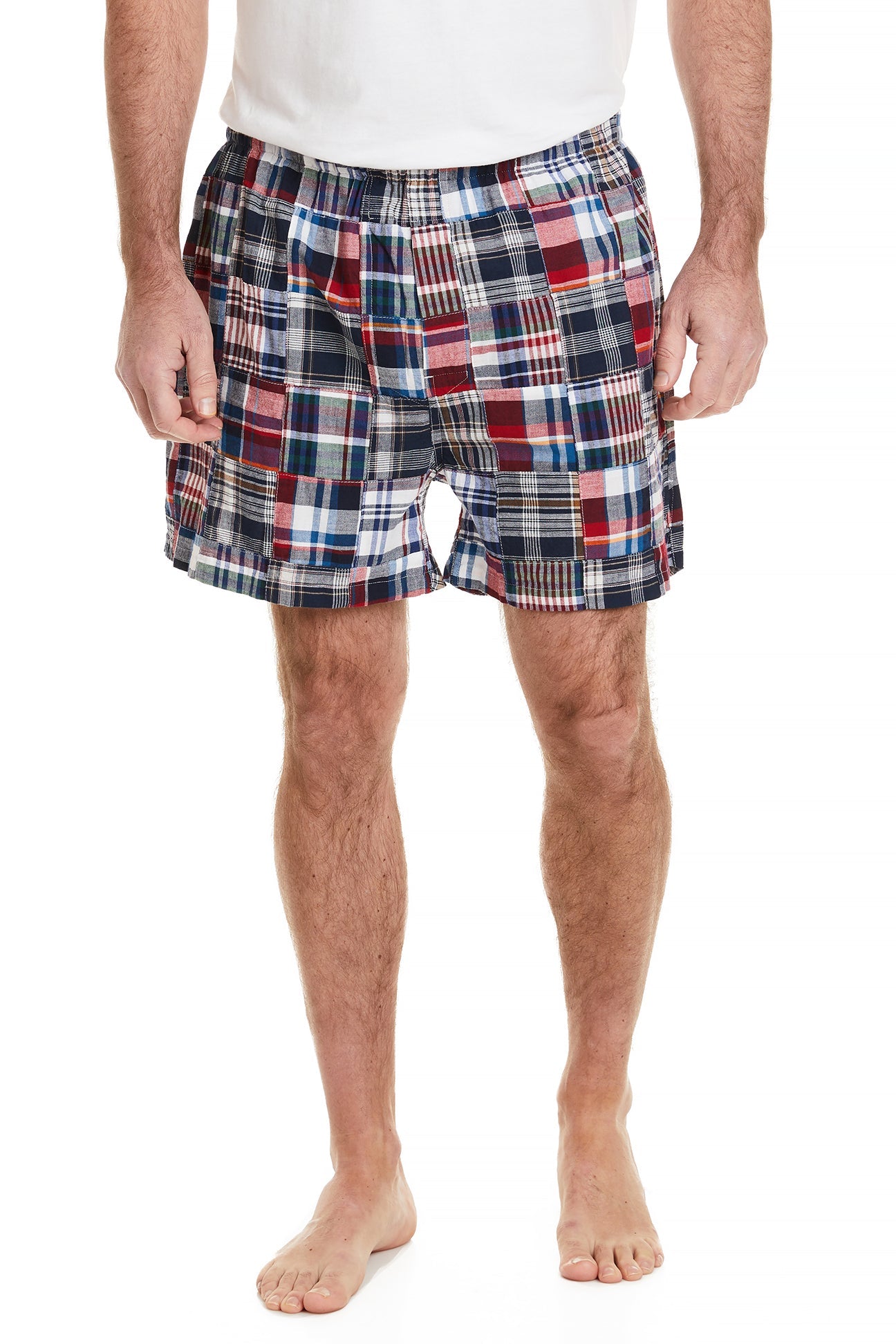 Light and airy, our patch madras Boxer is a great light layer for the summer months.