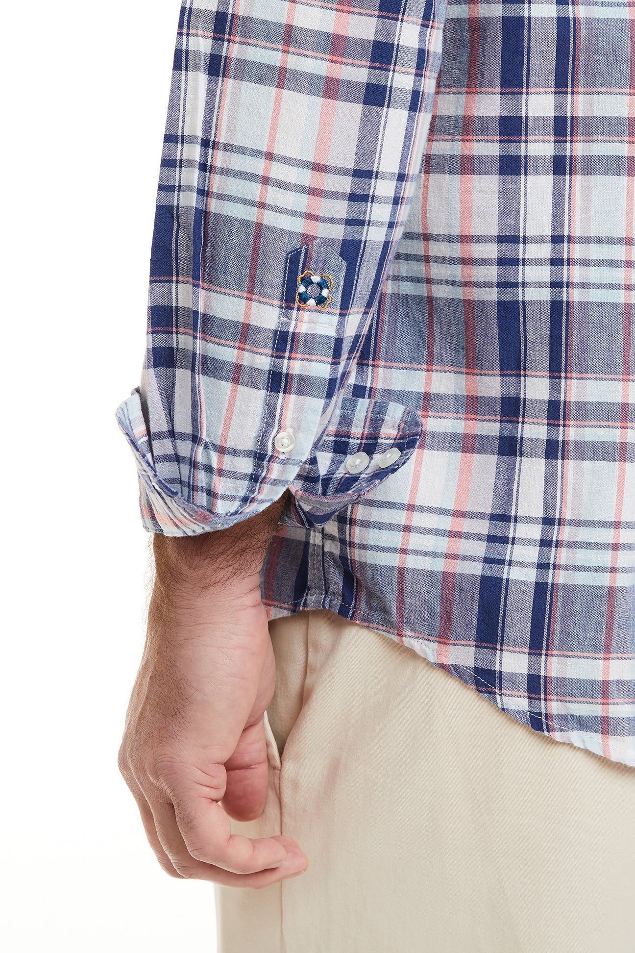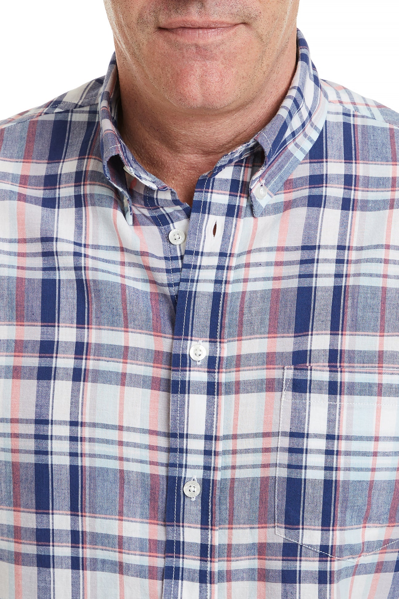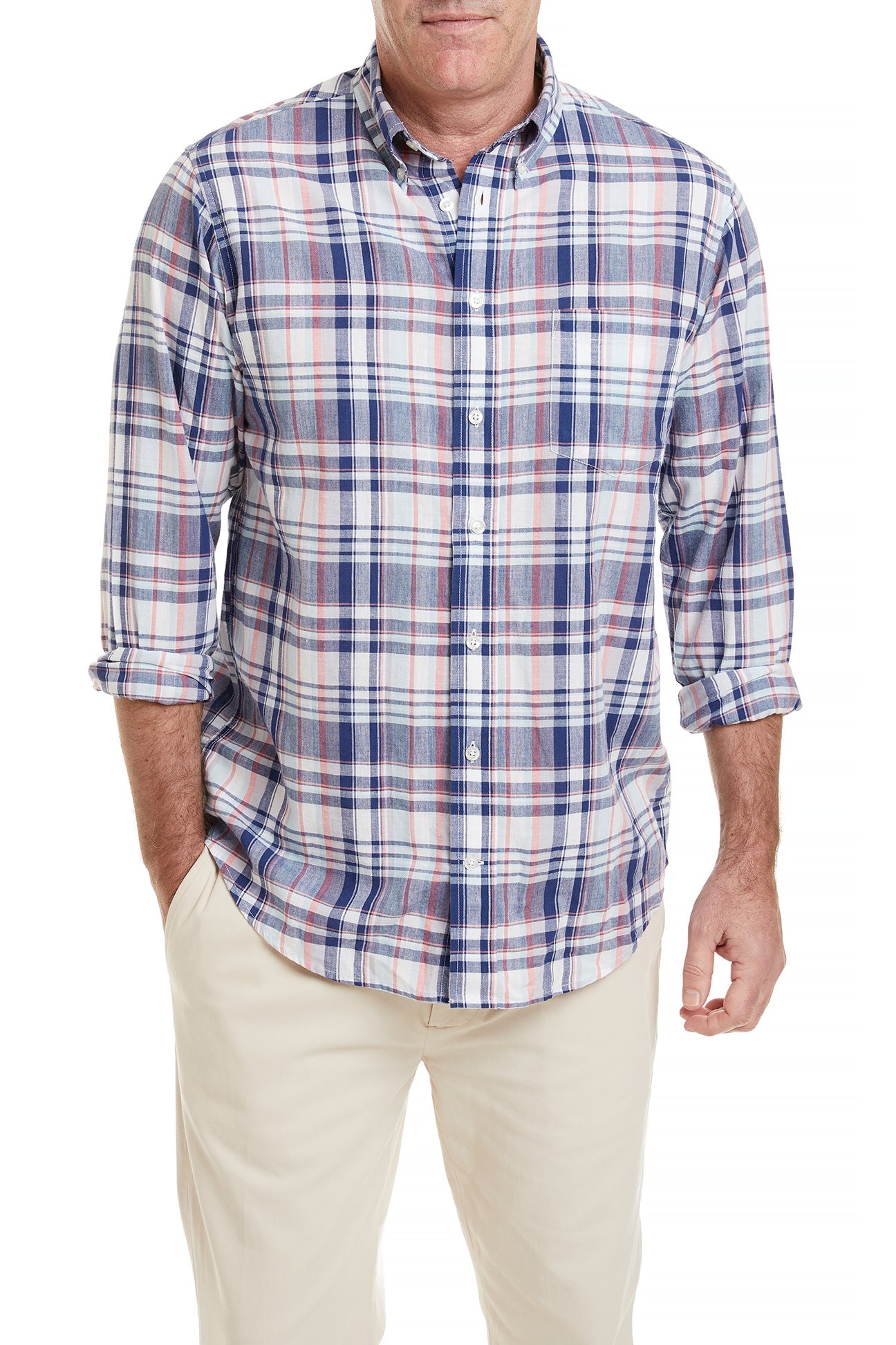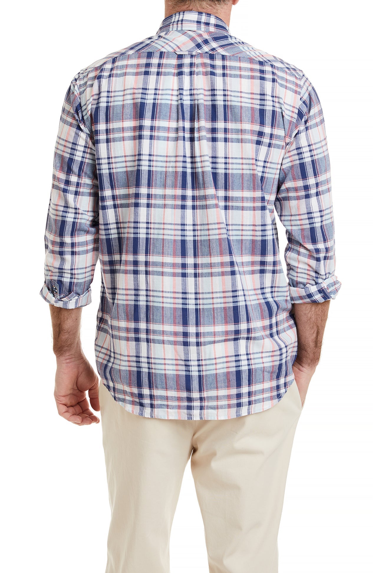The Chase Shirt in Bay Madras features a vibrant madras plaid pattern in cool blue tones, perfect for casual outings, beach trips, or laid-back weekends. The breathable fabric keeps you comfortable in summer heat, while the timeless design pairs effortlessly with shorts, chinos, or linen pants.
