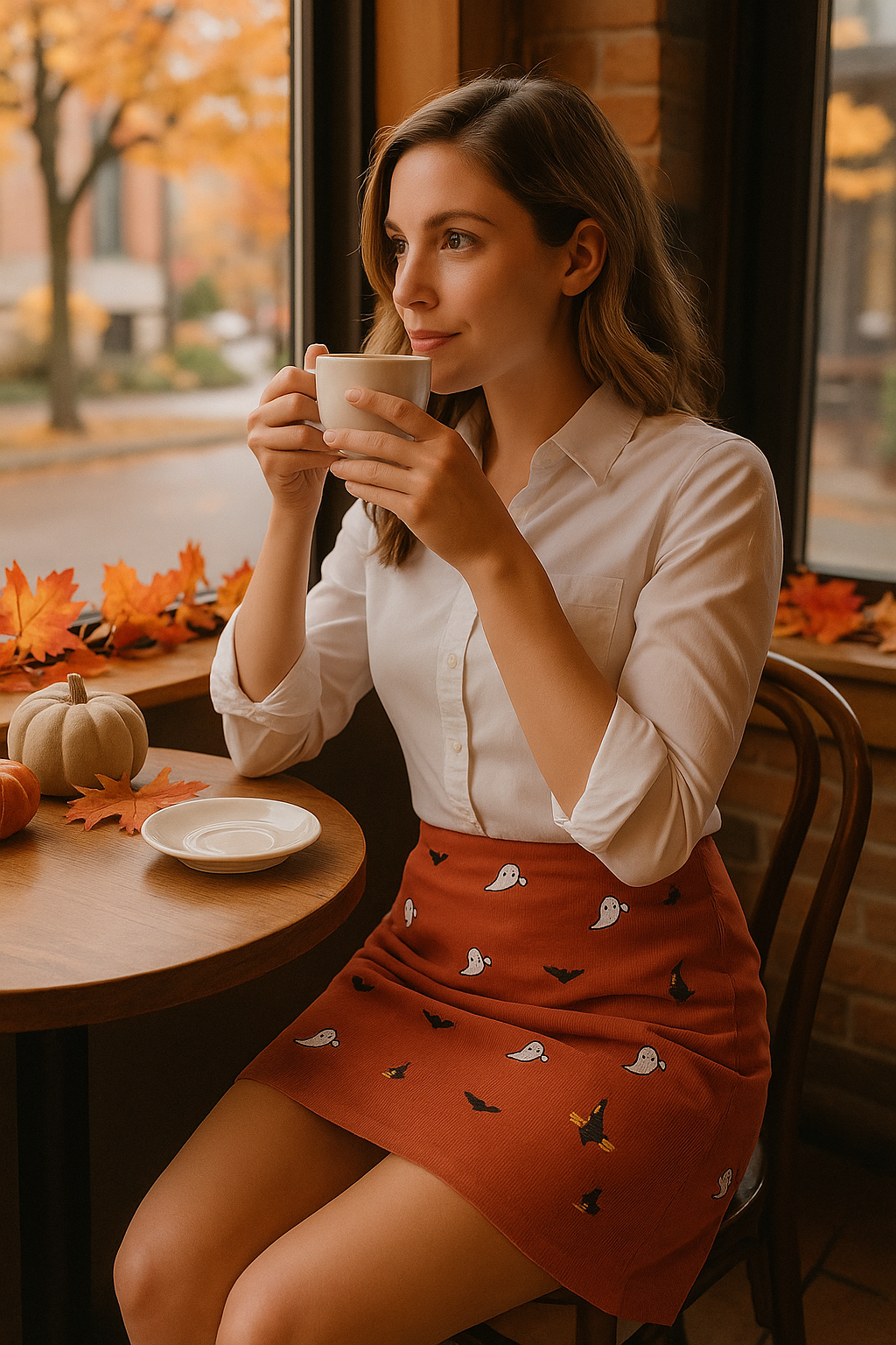 Just the right amount of spooky and cute! This stretch corduroy skirt is the perfect option for handing out candy to trick-or-treaters.